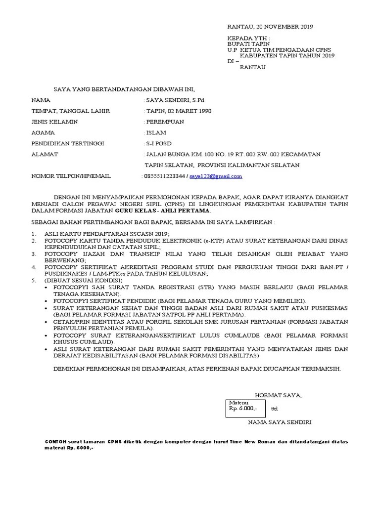 Salah satu syarat utama untuk mendaftar di cpns 2021 adalah menyertakan surat lamaran.